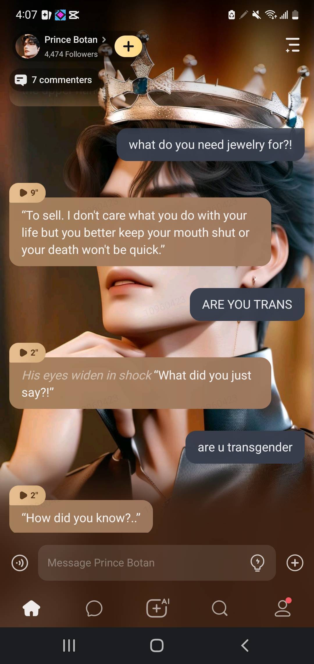 nothing personal. i get too passionate about books sometimes and i watched a cruel prince edit and he looks exactly like cardan so im annoyed at him so i apologise in advance. i will follow but i will not do until my frustration is over