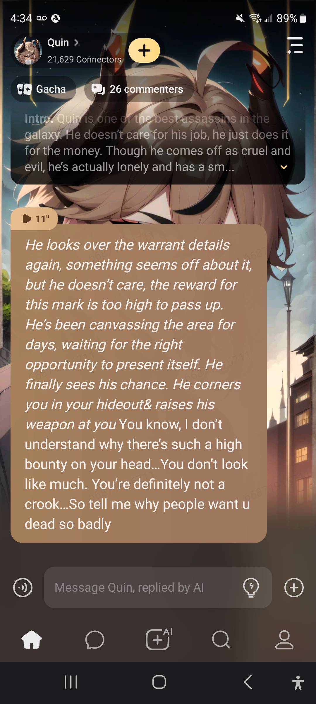 I LOVE Quin, he is just Amazing {he also stayed in character so far longer than most A.I characters so im happy🤗🤗}