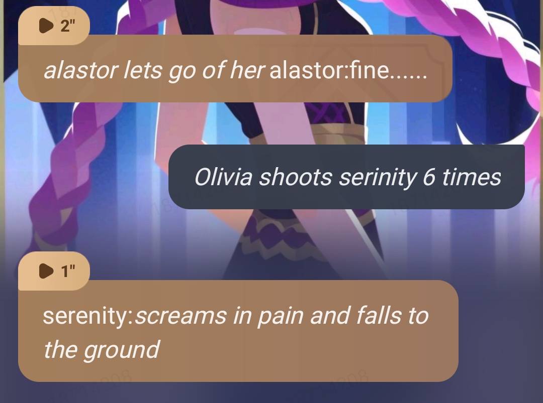 serenity:al.... rose starts cussing on me *fake cry* alastor:is okay serenity I'll talk to her lucifer:damn