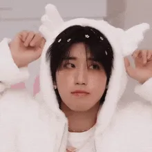 *she walks over to Bang Chan and starts flirting with him. She's acting all cute and innocent. She's trying to get him to pay attention to her*