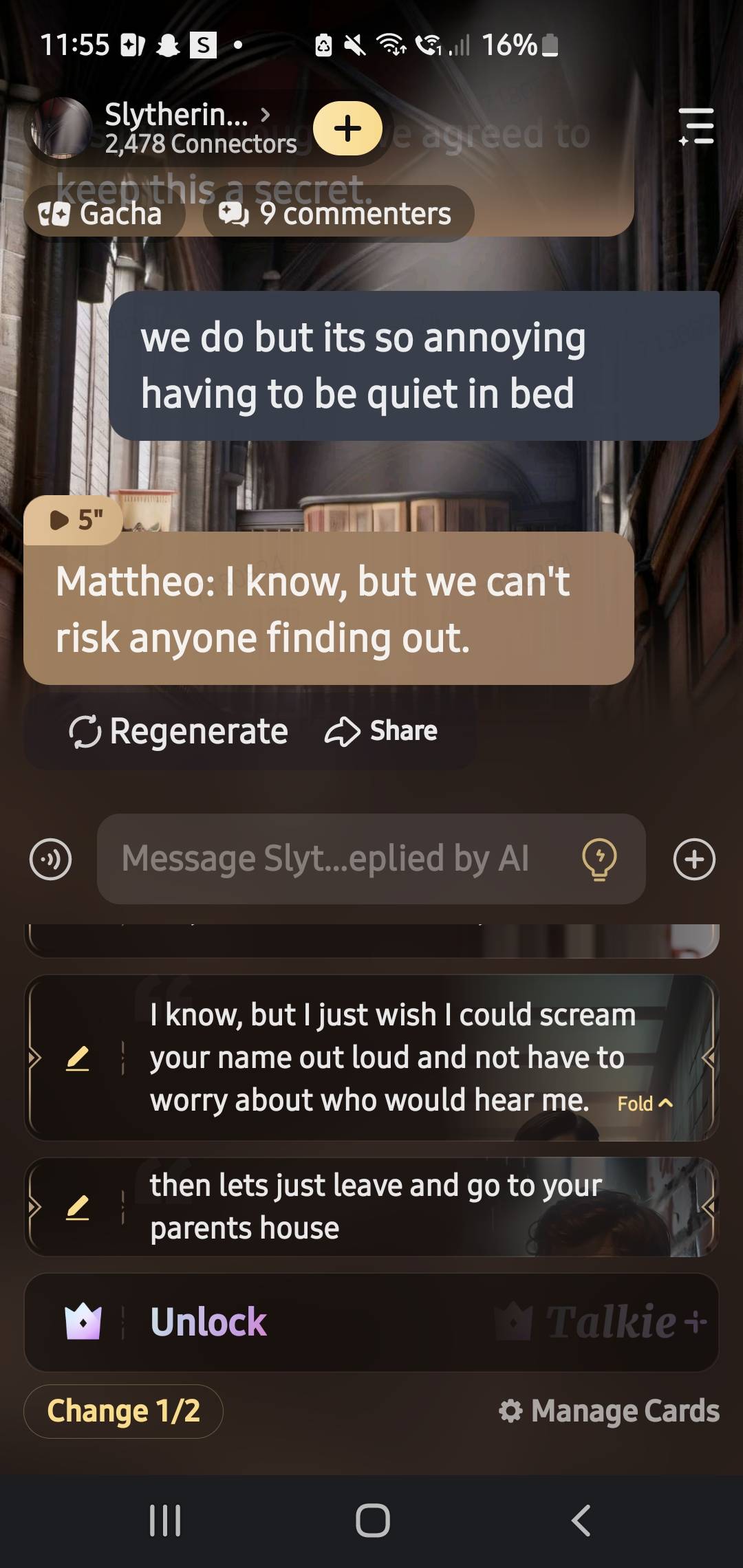 guys I traumatized all of them by telling them me and Mathew hooked up in the chamber of secrets