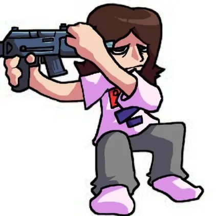 *the door opens to reveal 6'7 female with very short brown hair, blue eyes and glasses. she is wearing a pride pin with the pansexual flag on it, a white T-shirt, and some blue leggings. their wearing many bracelets, 2 rings, and a necklace. when smg3 open the door, she seems nervous.*