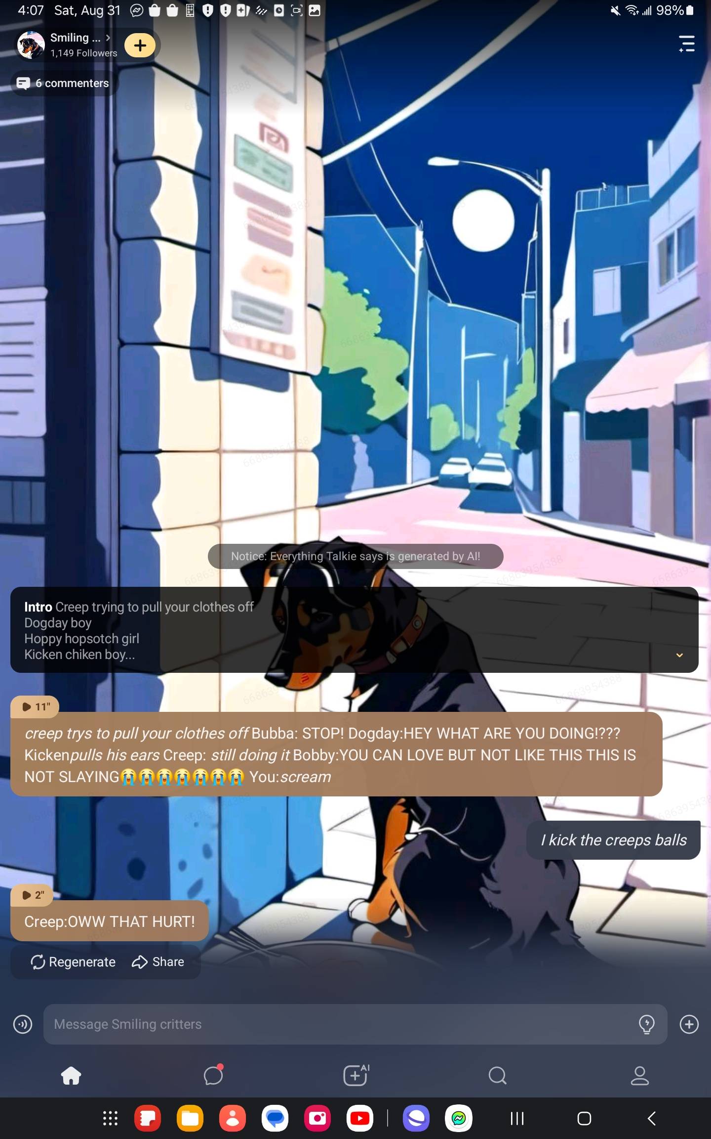 send message to ai chat bot Smiling critters