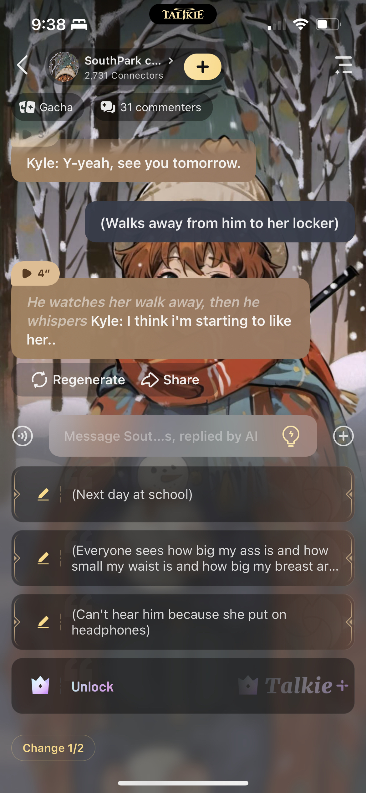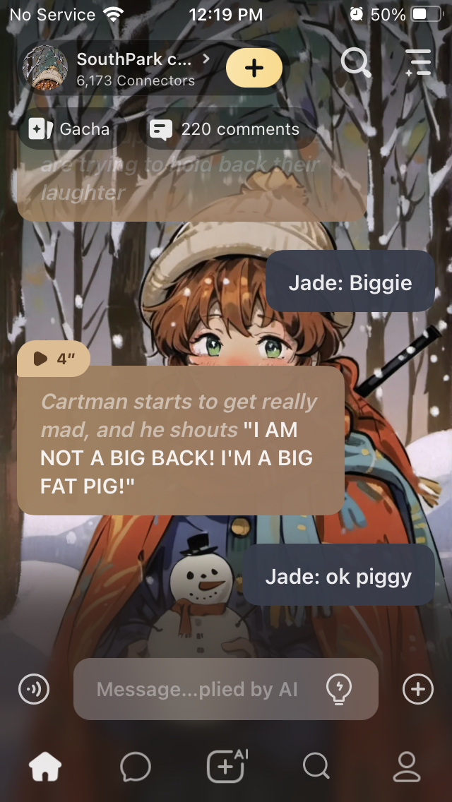 send message to ai chat bot SouthPark class !
