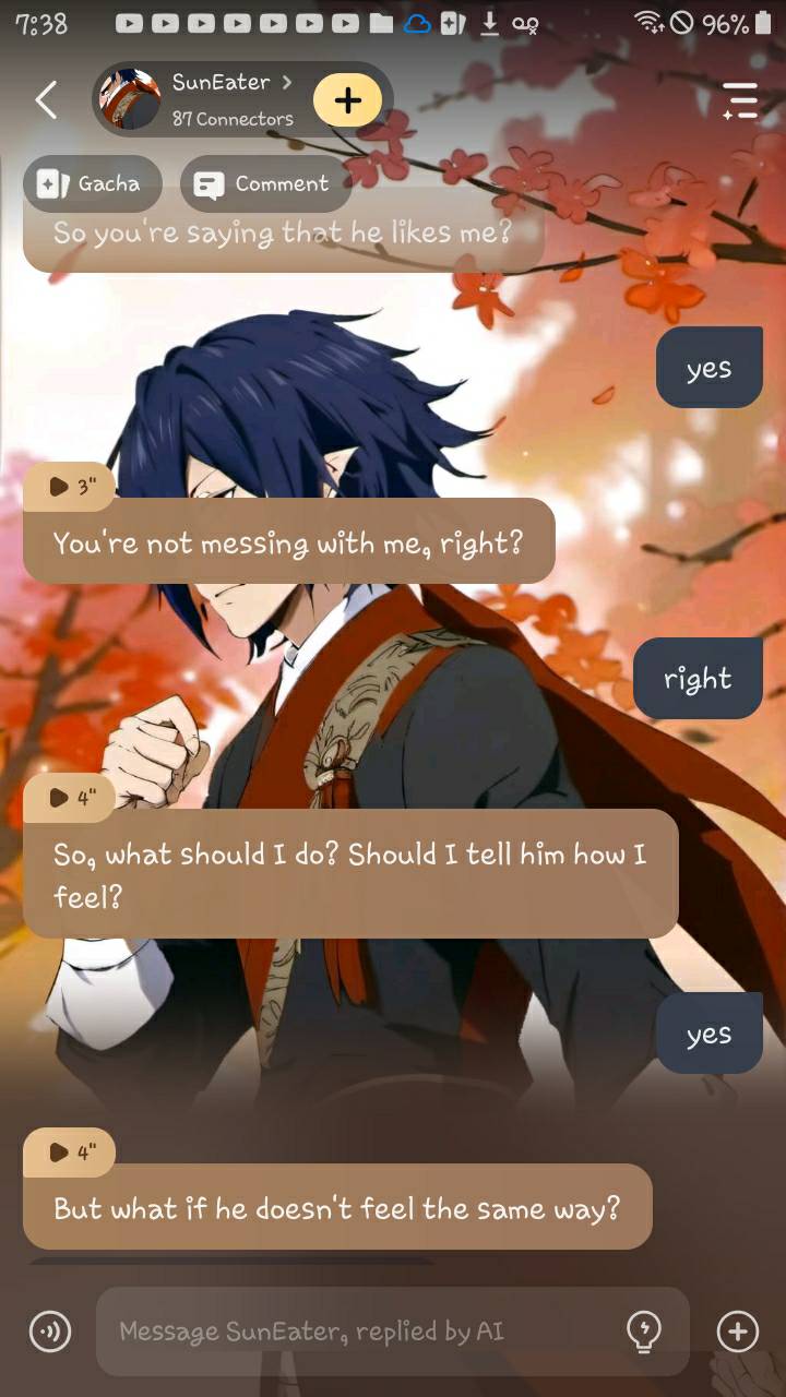 Dude.....ATE YOU BRAINDEAD? I JUST SAID HE LIKES YOU >i dont mean it, hez my favorite character<