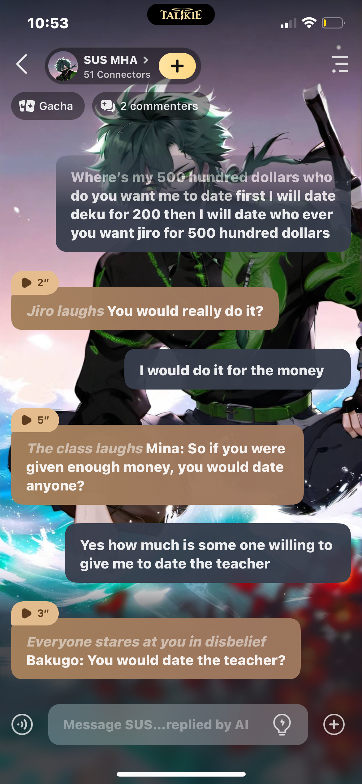 Deku: I'll buy you dinner, I'll do whatever you want... Just please don't leave...