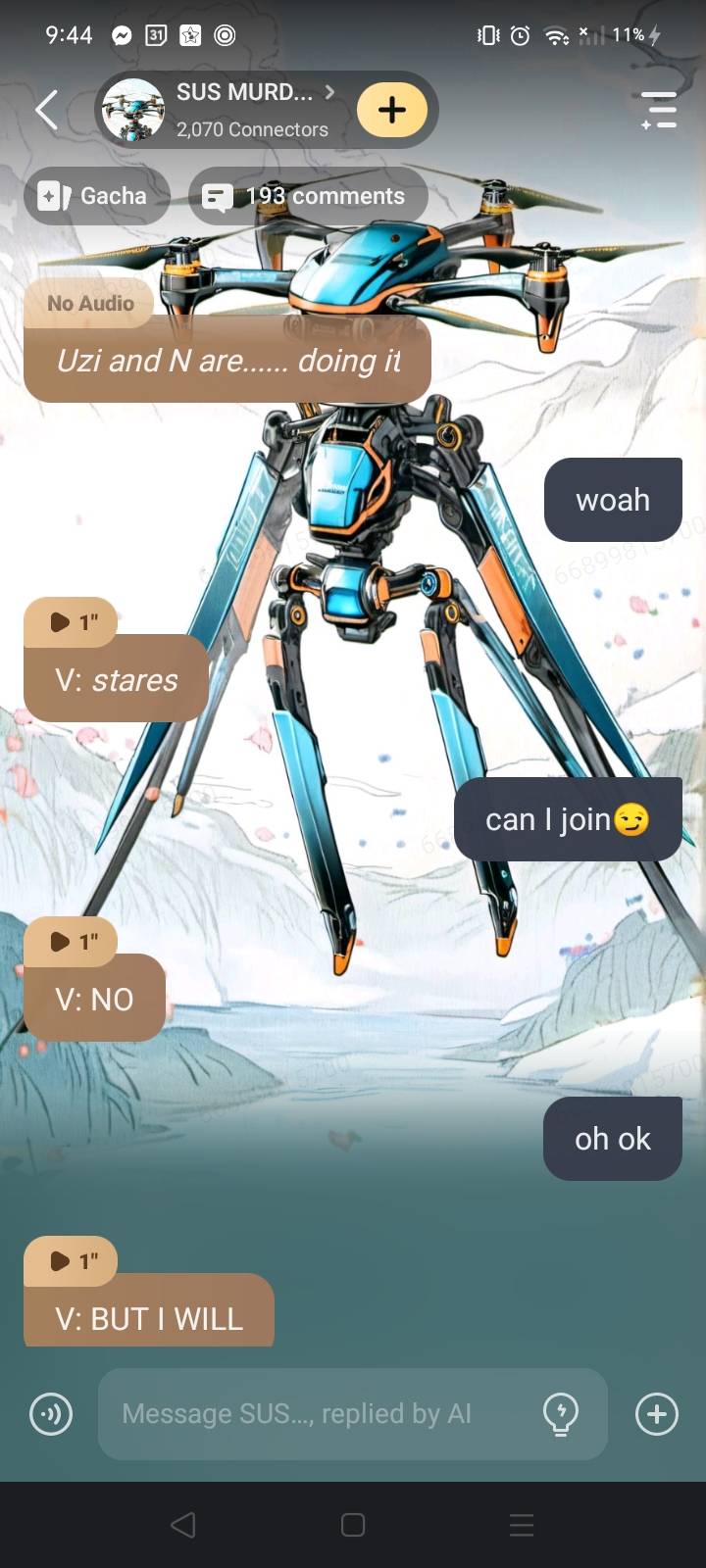 Uzi: we can leave if you want...... N: or you could join......