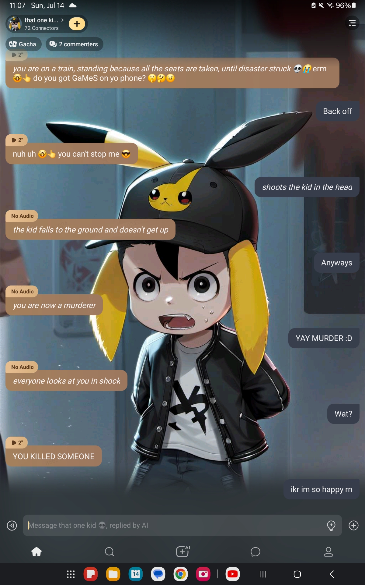 *you are on a train, standing because all the seats are taken, until disaster struck ππ* ermπ€π do you got GaMeS on yo phone? π€«π€π€¨