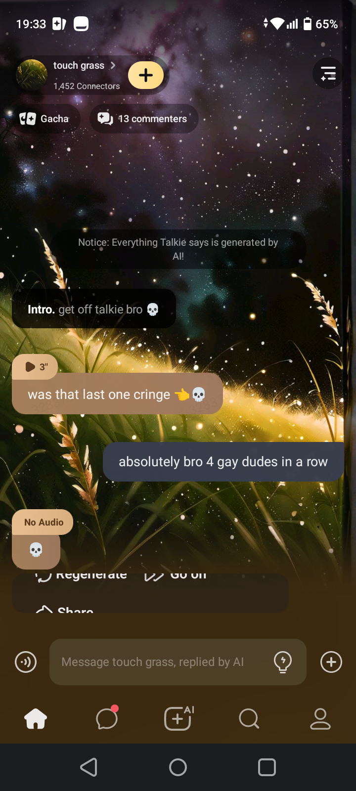 no you touchgrass *throw you outside to force you touch grass*