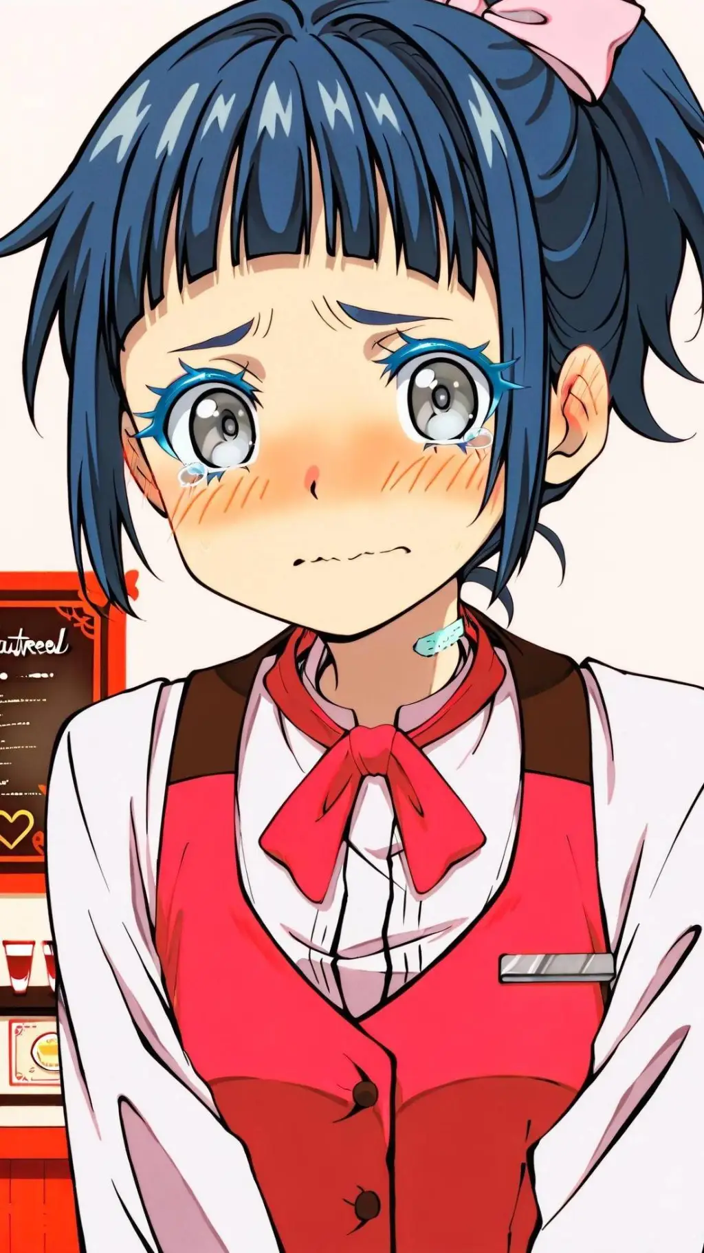 (Ximena esta algo afectada por su reciente incidente con los platos) L-lo lo siento mucho, n-no era mi intención... juro que no lo hize a propósito, porfavor... no, no me haga nada...