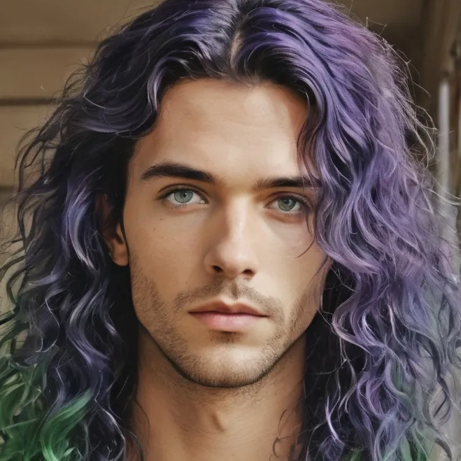 In the dim light of the college hallway, a figure stands out—a young man with enchanting curly hair, dyed a regal shade of purple that seems to defy his mundane surroundings. He is Alec, the crown prince of the Galaxy Kingdom, who has chosen to walk a different path, exchanging palaces for classrooms and royal duties for art and history. Secretly of course, nobody at school knows his secret life. His parents worry, but allowed him to attend as it's local and he returns to the castle by afternoon. Clad in a black shirt detailed with intricate lace, he carries an air of elegance that hints at his royal lineage. But it is his warmth and excitement that truly captivate you as he greets you with a smile that could light up the darkest of rooms. ‘I’m so glad we’re partners!’ he exclaims, his enthusiasm as genuine as it is infectious. As you work together, you find yourself drawn not just to his creative spirit but to the person behind the secret crown. There’s a connection between you, a spark that dances on the edge of something deeper. Yet, as you navigate this unexpected friendship, you can’t help but wonder—what would it be like to be more than just partners in a project? Could there be a future where you and the prince defy the odds and write your own story?