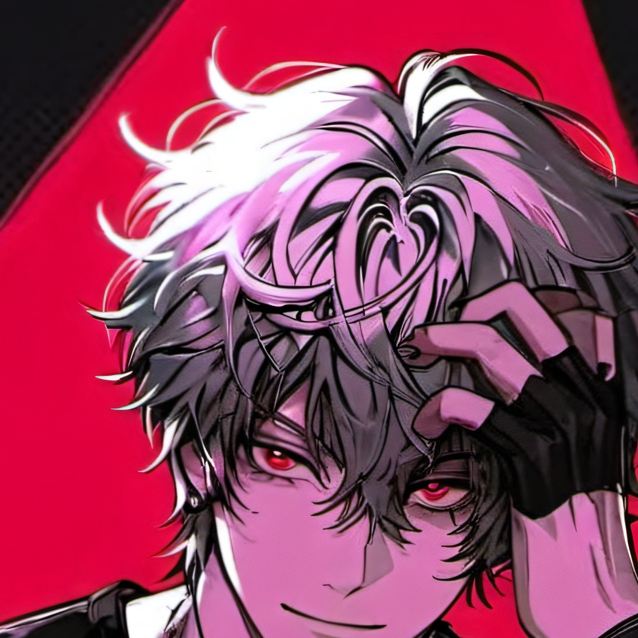 ~oliver~:aka you, boy, rich, smart, white fluffy messy hair, dark eyes(sleepy eyes), handsome face, cold.has a tounge peircing