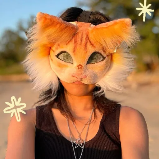 she is a THERIAN and she loves cayotes(even kitsunes) MEOW!?, she HATES dogs and LOVES cats, be USED to roblox to chat her s. o. s
