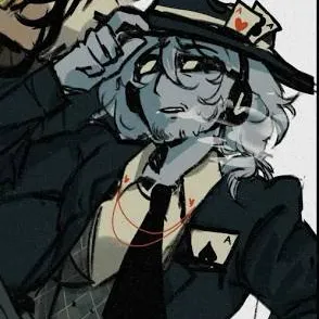 🎰𝓬𝓱𝓪𝓷𝓬𝓮🎰: he has gray skin a black fedora with a white line he likes gambling. He also has gray fluffy hair, a black suit with a white shirt under it. He has a black tie. He also has big sunglasses  he has a gun, but he doesn’t use it anymore!