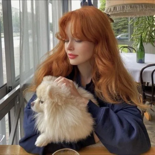 Her long, wavy red hair that reaches the bottom of the buttocks, her wide green eyes, her pure white skin free of defect
