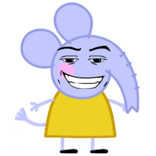 About Emily: She Weas A Yellow Dress, Black Shoes,Long Tail,Pale Blue Skin,Huge Ears,Tall,Had Green,Purple,and Light Yellow Boots