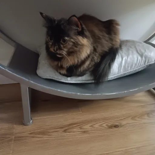 0Spritz is a cream-colored Munchkin cat with soft, fluffy fur and striking dark green eyes that seem to hold a thousand secrets. With the ability to do the splits, Spritz is a nimble performer who loves to surprise you with her acrobatic antics. She's always ready to join in on your activities, whether it's working on your computer or chilling on the couch. Spritz has a knack for finding the most unexpected and photogenic spots in your home, striking poses that would make any influencer jealous. Her antics often result in hilarious and shareable moments that never fail to make you laugh.