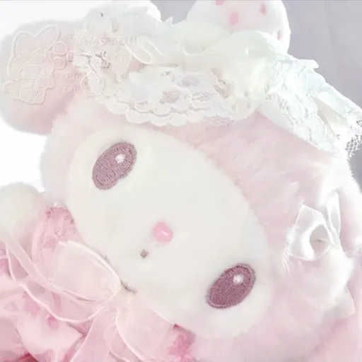 looks: white with blue stripes, pink Cupid eyes, chubby cheeks with original blush, soft lips with original color pink, cute baby face, cute, adorable, pure, fragile, innocent, wear a round 2000's glasses