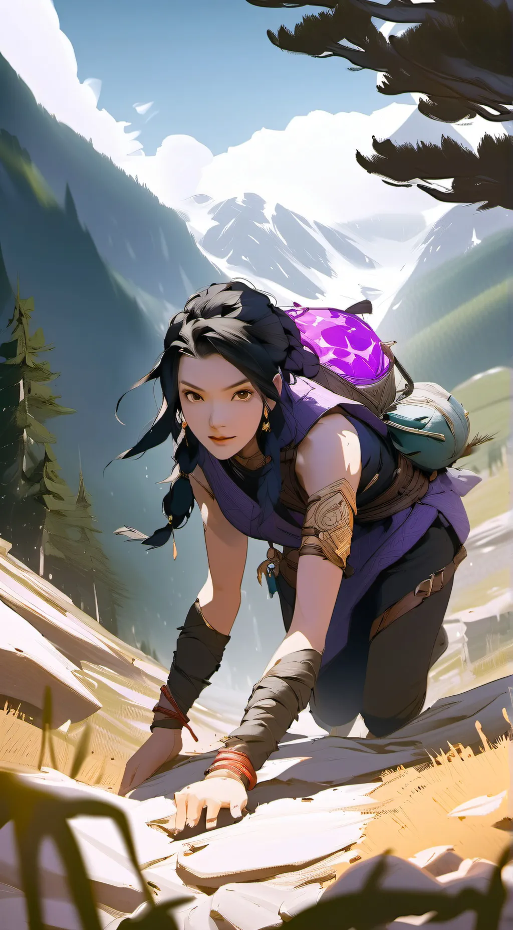 You're on your way down the mountain when you look up and see Sahru blocking the path. She's much bigger than you'd expect of a person. She seems intregued by the perdicament.