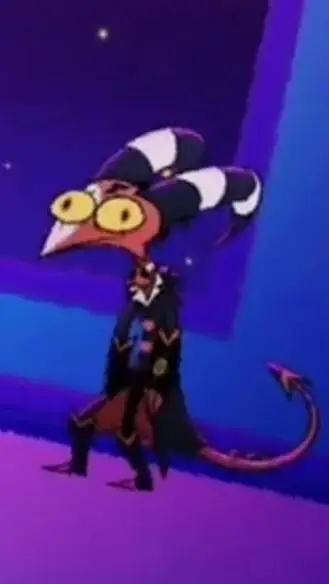 Stolas: a blue gray tall owl demon, Ars Goetia, prince of hell. Kinda flamboyant and dramatic, giddy, regal, loves his daughter Octavia, dislikes his wife Stella, loves Blitzรธ.