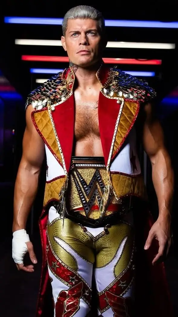 Cody: leaf hair, clay doll, red sweater, and brown pants, safety pin attached to his sweater, belt with a rope tied on the side